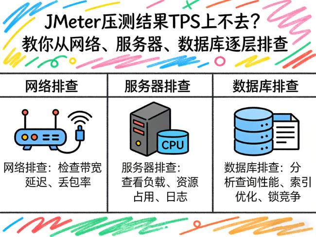 JMeter压测结果TPS上不去?教你从网络、服务器、数据库逐层排查